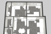 - prízemie má 78,5m2 a bolo využívané ako samostatná bytová jednotka (plne funkčná a zariadená kuchyňa, 3- izby, kúpeľňa s WC)