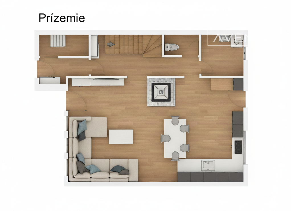 • kuchyňa prepojená s obývacou izbou (výstup na terasu)