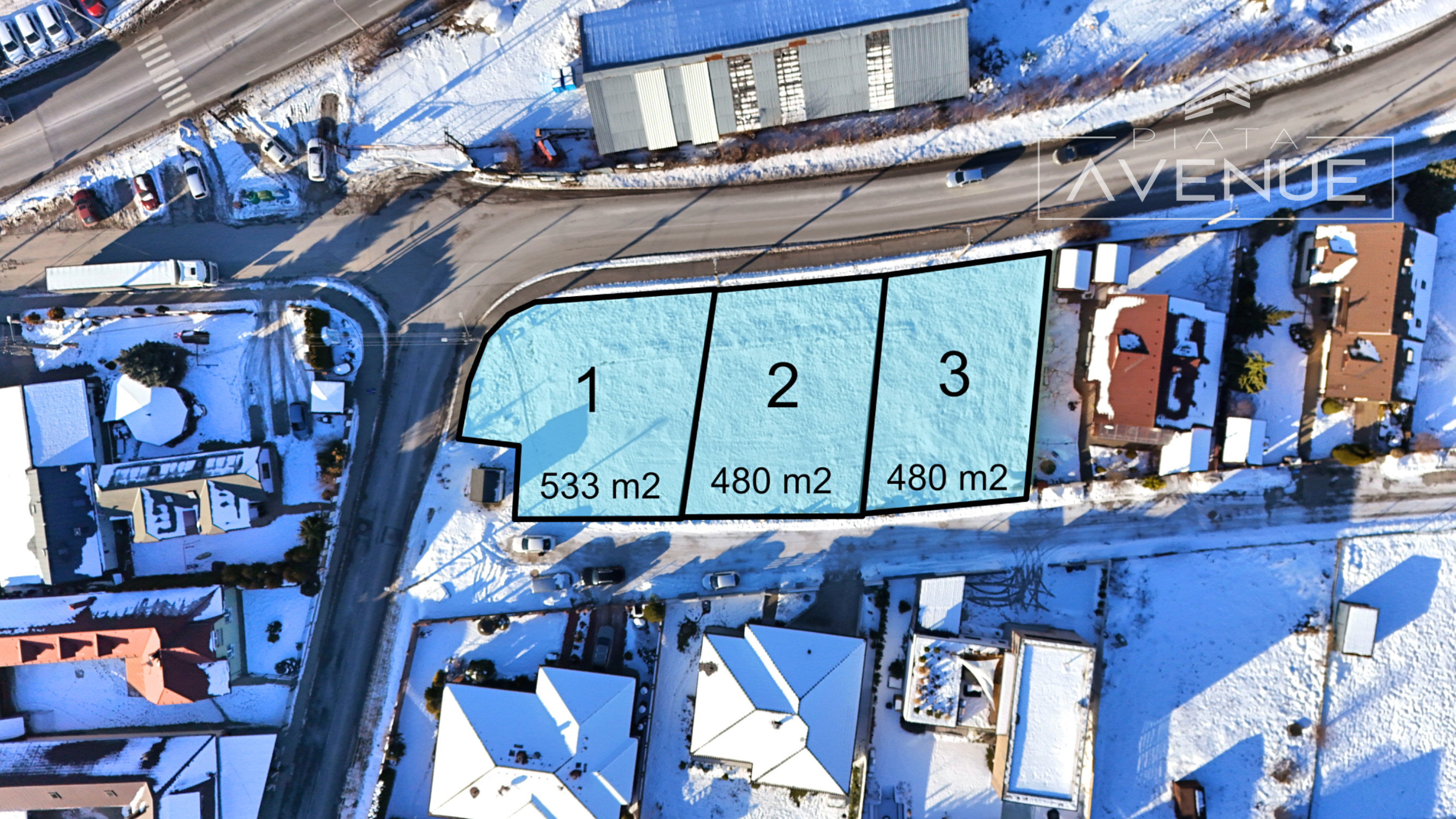 Pozemok je možné rozdeliť na 3 samostatné, nezávislé stavebné parcely:
