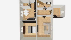 • kúpeľňa s toaletou a výstupom na veľkú povalu