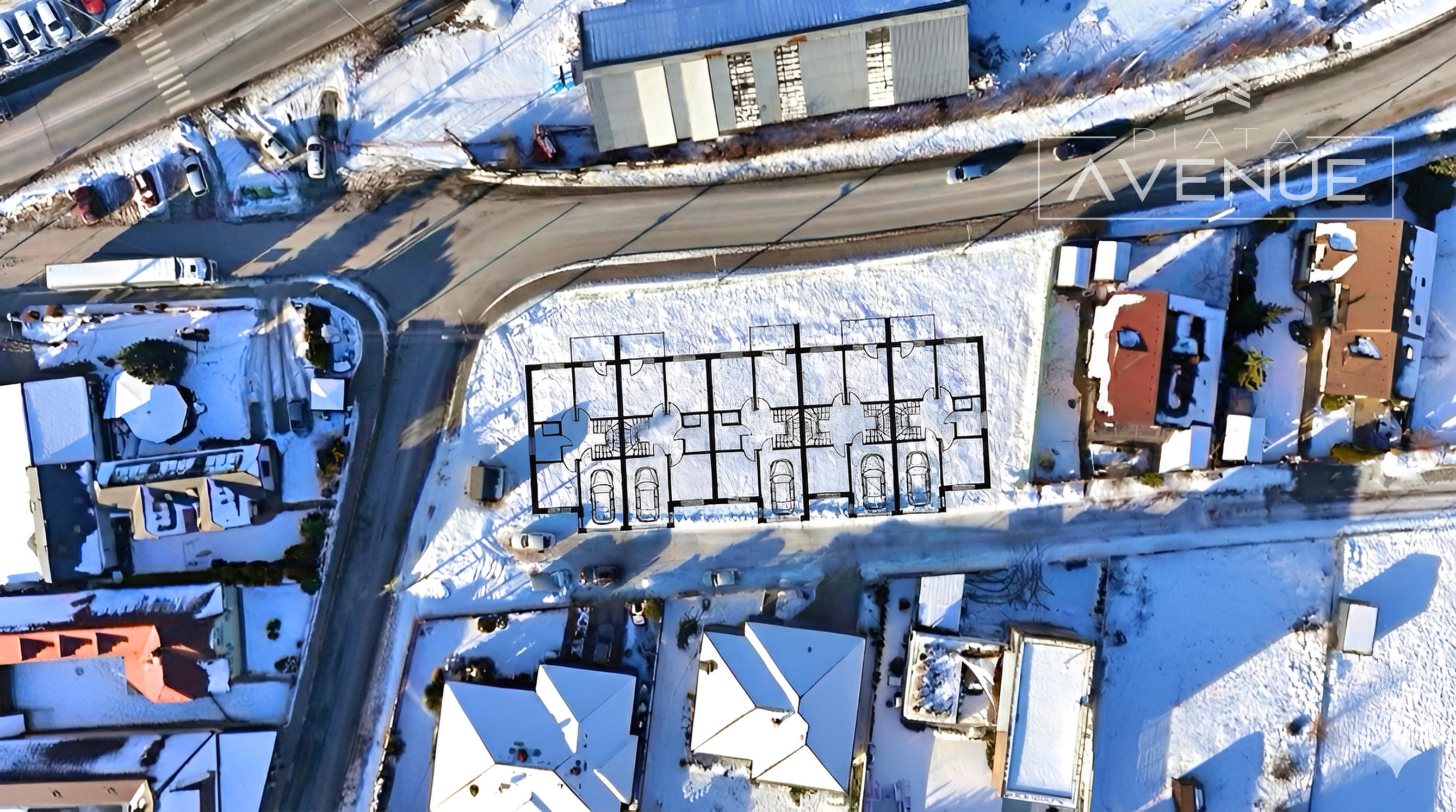 Na vizualizáciách je možné vidiet potenciál radovej výstavby alebo výstavbu 3 rodinnych domov.
