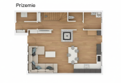 • kuchyňa prepojená s obývacou izbou (výstup na terasu)